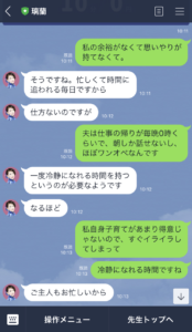 [prpsay img=”https://rnystaygold.net/wp-content/uploads/2019/05/90B816D5-1D1A-40F3-993F-D9E62A9B471B.jpeg” name=”綾子”]璃蘭先生からトークを開始してくださったので、質問に答えながら相談内容をお伝えしました。[/prpsay]