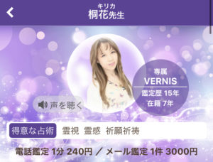 電話占いヴェルニに在籍している鑑定士は1分230円〜320円。